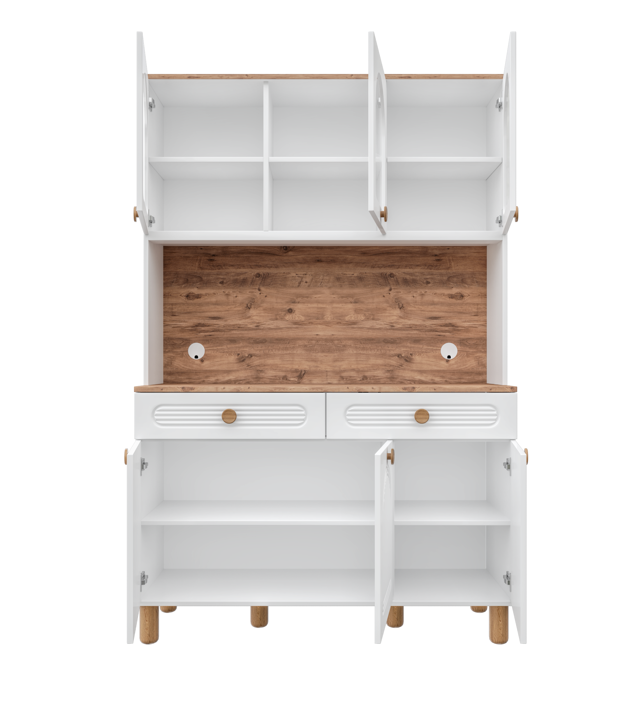 Rosa 140 cm Kahve Köşesi, fonksiyonel tasarımı ve estetik görünümüyle mutfağınıza şıklık katar. Tamamen MDF gövde yapısı ve membran kapakları ile uzun ömürlü kullanım sunar. LED aydınlatmalı yapısı sayesinde kahve makinesi, airfryer ve küçük mutfak gereçleriniz için ideal bir alan oluşturur. Yavaş kapanan kapaklar ve frenli teleskopik raylı çekmeceler ile konforlu kullanım sağlar.