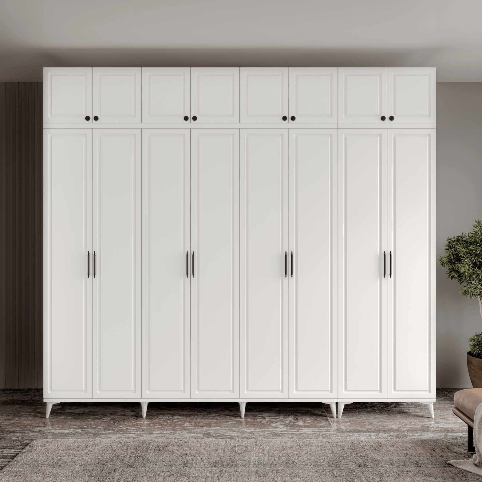 Milas 8 Kapaklı Yüklüklü Gardırop, büyük yatak odaları için tasarlanmış güçlü ve sade bir depolama çözümüdür. Üst bölümdeki yüklük alanı yorgan, yastık ve sezonluk ürünler için geniş saklama alanı sunarken, iç bölümde yer alan teleskopik raylı çekmeceler günlük kullanımda büyük kolaylık sağlar. Tamamı MDF malzemeden üretilen bu model, siyah renkli modern kulpları ve dengeli ayaklı yapısıyla şık bir duruş sergiler. Pistonlu menteşeli kapaklar yavaş ve sessiz kapanarak konforlu bir kullanım sunar.