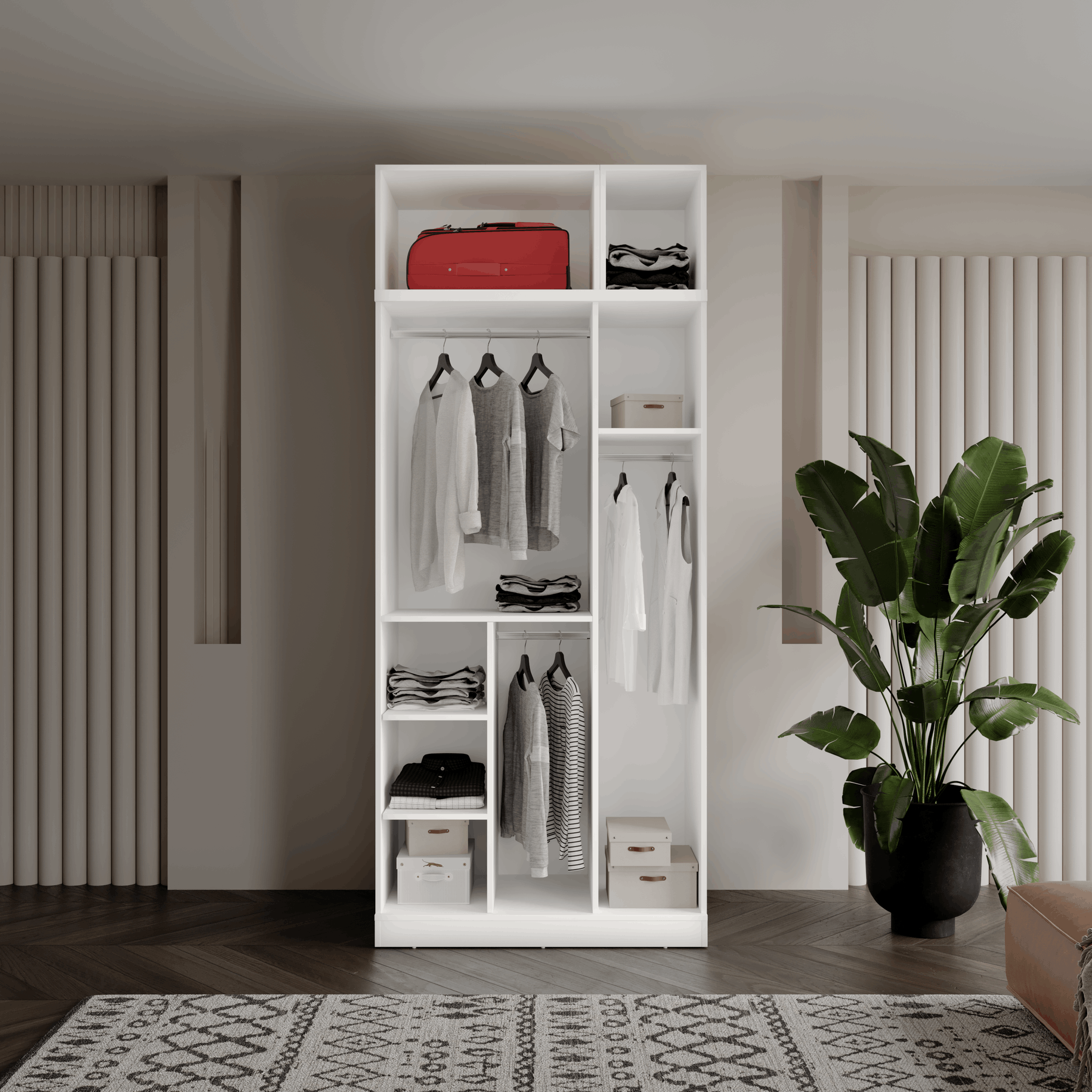 - 3 kapaklı kompakt gardırop tasarımı